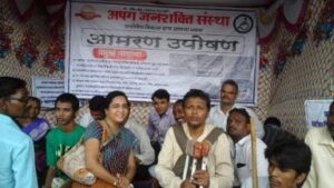 संस्थेचे पदाधिकारी व अपंग महिला व पुरुष यांनी आज पासून तहसीलदार कार्यालया समोर मागण्या पूर्ण करण्यासाठी आमरण उपोषण सुरु केले होते.